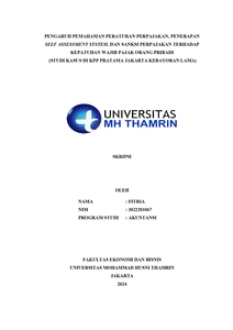 Fitria, Fitria (2024) PENGARUH PEMAHAMAN PERATURAN PERPAJAKAN, PENERAPAN SELF ASSESSMENT SYSTEM, DAN SANKSI PERPAJAKAN TERHADAP KEPATUHAN WAJIB PAJAK ORANG PRIBADI (STUDI KASUS DI KPP PRATAMA JAKARTA KEBAYORAN LAMA). Other thesis, Universitas Mohammad Husni Thamrin.