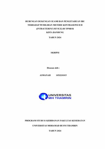 Asmanah, Asmanah (2024) HUBUNGAN DUKUNGAN SUAMI DAN PENGETAHUAN IBU TERHADAP PEMILIHAN METODE KONTRASEPSI IUD (INTRAUTERINE DEVICE) DI TPMB R KOTA BANDUNG TAHUN 2024. Other thesis, Universitas Mohammad Husni Thamrin.
