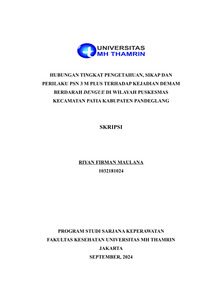 Riyan Firman, Maulana (2024) Hubungan Tingkat Pengetahuan, Sikap Dan Perilaku PSN 3 M Plus Terhadap Kejadian Demam Berdarah Dengue Di Wilayah Puskesmas Kecamatan Patia Kabupaten Pandeglang. Other thesis, Universitas Mohammad Husni Thamrin.