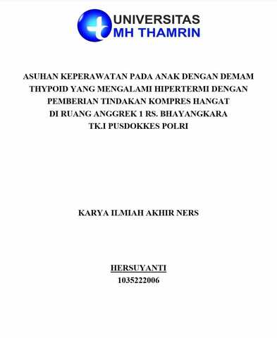 Hersuyanti, Hersuyanti (2024) Asuhan Keperawatan Pada Anak Dengan Thypoid Yang Mengalami Hipertermi Dengan Pemberian Tindakan Kompres Hangat Di Ruang Anggrek 1 RS. Bhayangkara TK.I Pusdokkes Polri. Other thesis, Universitas Mohammad Husni Thamrin.