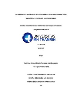 Lilik, Agustin (2024) UPAYA MENINGKATKAN KEMAMPUAN MOTORIK KASAR MELALUI METODE PERMAINAN LEMPAR TANGKAP BOLA DI KELOMPOK B PAUD DAHLIA CAWANG. Other thesis, Universitas Mohammad Husni Thamrin.