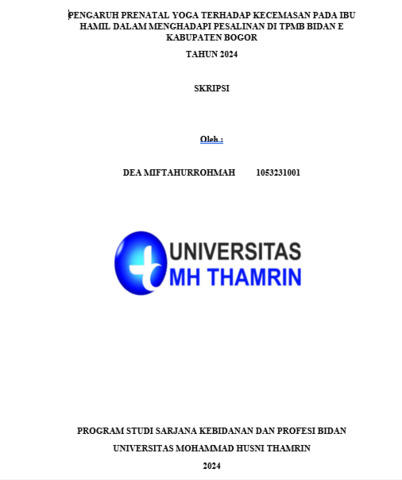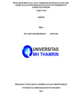 Dea, Miftahurrohmah (2024) PENGARUH PRENATAL YOGA TERHADAP KECEMASAN PADA IBU HAMIL DALAM MENGHADAPI PERSALINAN DI TPMB BIDAN E KABUPATEN BOGOR TAHUN 2024. Other thesis, Universitas Mohammad Husni Thamrin.