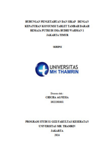 Chicha, Agnesia (2024) HUBUNGAN PENGETAHUAN DAN SIKAPDENGAN KEPATUHAN KONSUMSI TABLET TAMBAH DARAH REMAJA PUTRI DI SMA BUDI WARMAN 1 JAKARTA TIMUR. Other thesis, Universitas Mohammad Husni Thamrin.