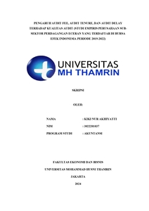 Kiki Nur, Akhiyati (2024) PENGARUH AUDIT FEE, AUDIT TENURE, DAN AUDIT DELAY TERHADAP KUALITAS AUDIT (STUDI EMPIRIS PADA PERUSAHAAN SUB-SEKTOR PERDAGANGAN ECERAN YANG TERDAFTAR DI BURSA EFEK INDONESIA PERIODE 2019 - 2022. Other thesis, Universitas Mohammad Husni Thamrin.