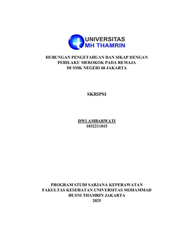 Dwi, Ambarwati (2025) Hubungan Pengetahuan dan Sikap Dengan Perilaku Merokok Pada Remaja di SMK Negeri 68 Jakarta. Other thesis, Universitas Mohammad Husni Thamrin.