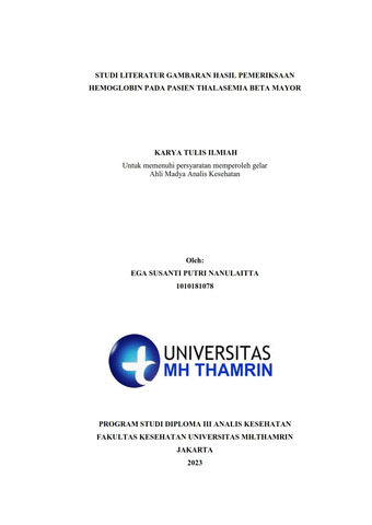 Ega Susanti Putri, Nanulaitta (2023) Studi Literatur Gambaran Hasil Pemeriksaan Kadar Hemoglobin pada Pasien Thalasemia Beta Mayor. Diploma thesis, Universitas Mohammad Husni Thamrin.