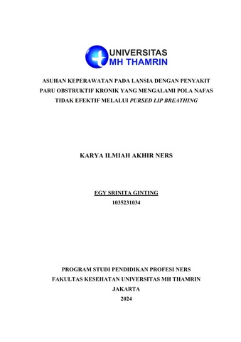 Egy Srinita, Ginting (2024) ASUHAN KEPERAWATAN PADA LANSIA DENGAN PENYAKIT PARU OBSTRUKTIF KRONIK YANG MENGALAMI POLA NAFAS TIDAK EFEKTIF MELALUI PURSED LIP BREATHING. Other thesis, Universitas Mohammad Husni Thamrin.