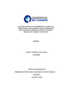 Fadly Vitorian, Guivarma (2024) FAKTOR-FAKTOR YANG BERHUBUNGAN DENGAN STRES KERJA PADA PEKERJA BAGIAN PRODUKSI DI PT. CIKARANG PERKASA MANUFACTURING BEKASI JAWA BARAT TAHUN 2024. Other thesis, Universitas Mohammad Husni Thamrin.