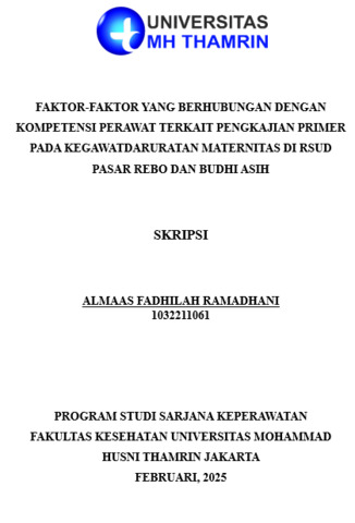 Almaas Fadhilah, Ramadhani (2025) FAKTOR-FAKTOR YANG BERHUBUNGAN DENGAN KOMPETENSI PERAWAT TERKAIT PENGKAJIAN PRIMER PADA KEGAWATDARURATAN MATERNITAS DI RSUD PASAR REBO DAN BUDHI ASIH. Other thesis, Universitas Mohammad Husni Thamrin.