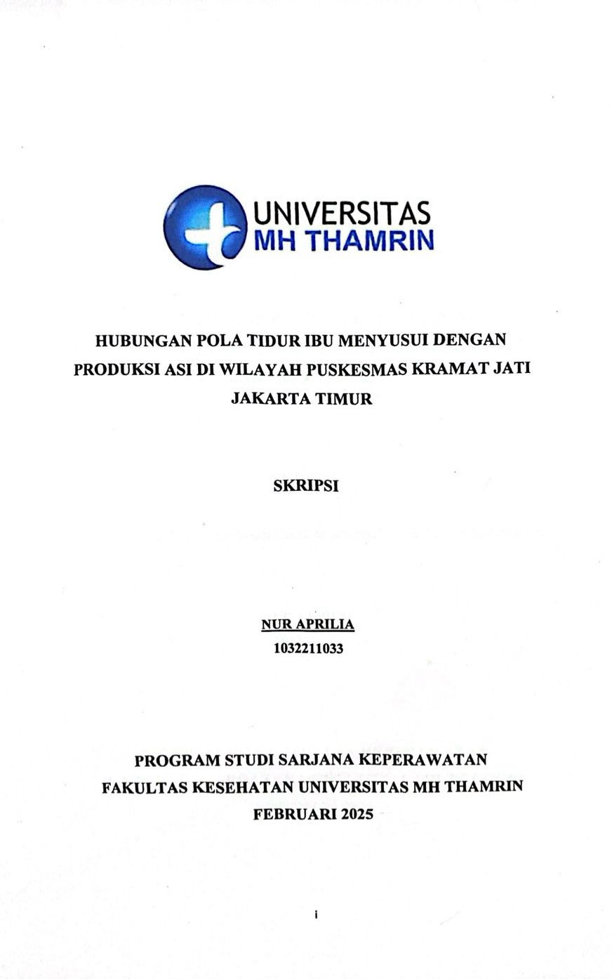 Nur, Aprilia (2025) HUBUNGAN POLA TIDUR IBU MENYUSUI DENGAN PRODUKSI ASI DI WILAYAH PUSKESMAS KRAMAT JATI JAKARTA TIMUR. Other thesis, Universitas Mohommad Husni Thamrin.