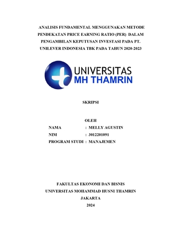 Melly, Agustin (2024) ANALISIS FUNDAMENTAL MENGGUNAKAN METODE PENDEKATAN PRICE EARNING RATIO (PER) DALAM PENGAMBILAN KEPUTUSAN INVESTASI PADA PT. UNILEVER INDONESIA TBK PADA TAHUN 2020-2023. Other thesis, Universitas Mohammad Husti Thamrin.