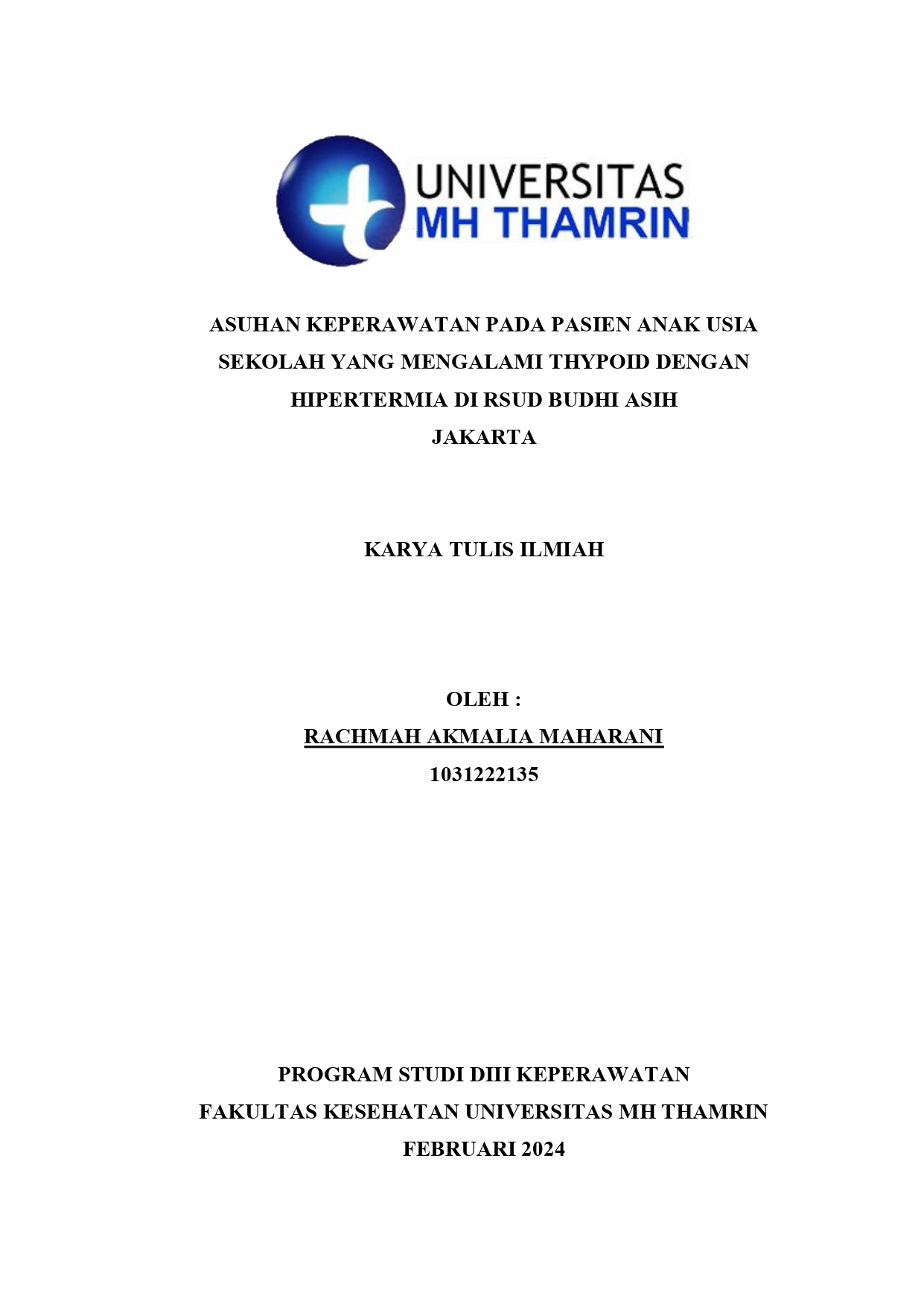 Rachmah Akmalia, Maharani (2024) Asuhan Keperawatan Pada Pasien Anak Usia Sekolah Yang Mengalami Thypoid Dengan Hipertermia Di RSUD Budhi Asih Jakarta. Diploma thesis, Universitas Mohammad Husni Thamrin.