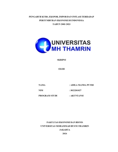 Adila Manda, Putri (2024) PENGARUH KURS, EKSPOR, IMPOR DAN INFLASI TERHADAP PERTUMBUHAN EKONOMI DI INDONESIA TAHUN 2003-2023. Other thesis, Universitas Mohammad Husni Thamrin.