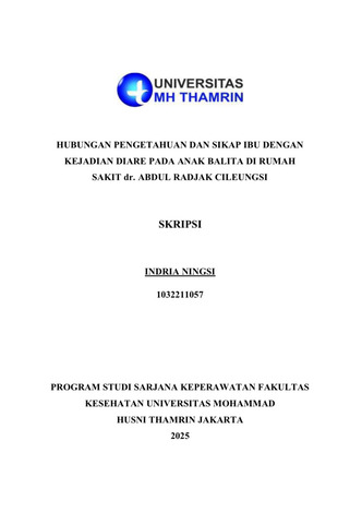 Indria, Ningsi (2025) Hubungan Pengetahuan dan Sikap Ibu dengan Kejadian Diare pada Anak Balita di Rumah Sakit dr. Abdul Radjak Cileungsi. Other thesis, Universitas MH Thamrin.