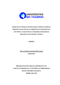 Wulan Dwi, Agustin Pratama (2025) HUBUNGAN TINGKAT PENGETAHUAN DAN PERAN PERAWAT DALAM UPAYA PERCEPATAN PENURUNAN STUNTING ANAK DI WILAYAH KERJA PUSKESMAS KRAMAT JATI JAKARTA TIMUR. Other thesis, Universitas Mohammad Husni Thamrin.