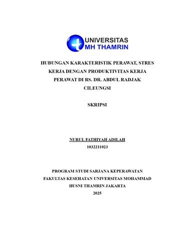 Nurul Fathiyah, Adilah (2025) HUBUNGAN KARAKTERISTIK PERAWAT, STRES KERJA DENGAN PRODUKTIVITAS KERJA PERAWAT DI RS. DR. ABDUL RADJAK CILEUNGSI. Other thesis, Universitas Mohammad Husni Thamrin.