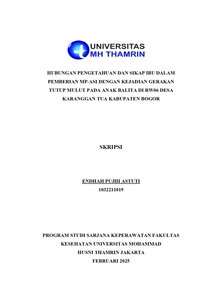 Endhah Pujhi, Astuti (2025) HUBUNGAN PENGETAHUAN DAN SIKAP IBU DALAM PEMBERIAN MP-ASI DENGAN KEJADIAN GERAKAN TUTUP MULUT PADA ANAK BALITA DI RW06 DESA KARANGGAN TUA KABUPATEN BOGOR. Other thesis, Universitas Mohammad Husni Thamrin.