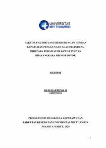 Rudi, Hartono M (2025) FAKTOR-FAKTOR YANG BERHUBUNGAN DENGAN KEPATUHAN PENGGUNAAN ALAT PELINDUNG DIRI PADA PERAWAT DI RAWAT INAP RS BHAYANGKARA BRIMOB DEPOK. Other thesis, Universitas Mohammad Husni Thamrin..
