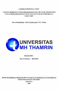 Dina Sri, Rahayu (2024) Asuhan Kebidanan Nonfarmakologi pada Ibu Hamil Trimester I untuk Mengurangi Rasa Mual dan Muntah di TPMB Bidan S Tahun 2024. Other thesis, Universitas Mohammad Husni Thamrin.