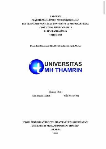 Ami Amalia, Saadah (2024) LAPORAN PRAKTIK MANAJEMEN ASUHAN KEBIDANAN BERKESINAMBUNGAN ATAU CONTINUITY OF MIDWIFERY CARE (COMC) PADA IBU HAMIL NY. K DI TPMB AMI AMALIA TAHUN 2024. Other thesis, Universitas Mohammad Husni Thamrin.