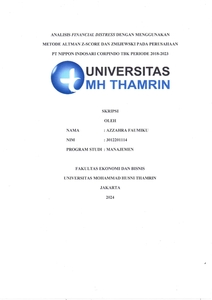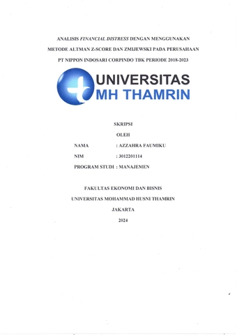Azzahra, Faumiku (2024) ANALISIS FINANCIAL DISTRESS DENGAN MENGGUNAKAN METODE ALTMAN Z-SCORE DAN ZMIJEWSKI PADA PERUSAAAN PT NIPPON INDOSARI CORPINDO TBK PERIODE 2018-2023. Other thesis, Universitas Mohammad Husni Thamrin.