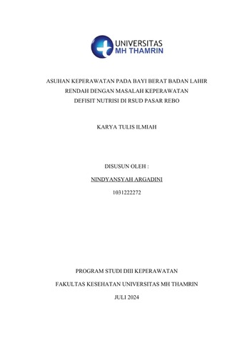 Nindyansyah, Argadini (2024) ASUHAN KEPERAWATAN PADA BAYI BERAT BADAN LAHIR RENDAH DENGAN MASALAH KEPERAWATAN DEFISIT NUTRISI DI RSUD PASAR REBO. Diploma thesis, Universitas Mohammad Husni Thamrin.