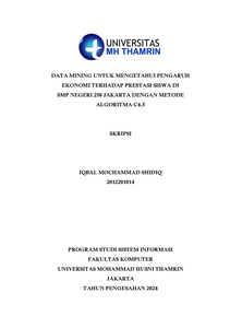| Uncontrolled Keywords: | Data mining, algoritma C4.5, prestasi siswa, faktor ekonomi, pohon keputusan, SMP Negeri 258 Jakarta. |