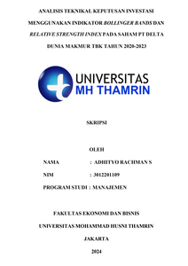 Adhityo Rachman, Saputra (2024) ANALISIS TEKNIKAL KEPUTUSAN INVESTASI MENGGUNAKAN INDIKATOR BOLLINGER BANDS DAN RELATIVE STRENGTH INDEX PADA SAHAM PT DELTA DUNIA MAKMUR TBK TAHUN 2020-2023. Other thesis, Universitas Mohammad Husni Thamrin.