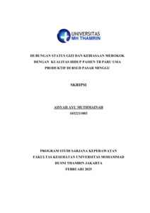 Aisyah Ayu, Muthmainah (2025) HUBUNGAN STATUS GIZI DAN KEBIASAAN MEROKOK DENGAN KUALITAS HIDUP PASIEN TB PARU USIA PRODUKTIF DI RSUD PASAR MINGGU. Other thesis, Universitas Mohammad Husni Thamrin.