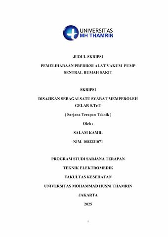 Salam, Kamil (2025) PEMELIHARAAN PREDIKSI ALAT VAKUM PUMP SENTRAL RUMAH SAKIT. Other thesis, Universitas Mohammad Husni Thamrin.