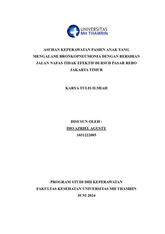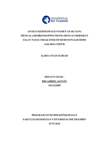Dio Azriel, Agusty (2024) ASUHAN KEPERAWATAN PASIEN ANAK YANG MENGALAMI BRONKOPNEUMONIA DENGAN BERSIHAN JALAN NAFAS TIDAK EFEKTIF DI RSUD PASAR REBO JAKARTA TIMUR. Diploma thesis, Universitas Mohammad Husni Thamrin.