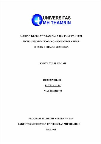 Putri, Aulia (2025) ASUHAN KEPERAWATAN PADA IBU POST PARTUM SECTIO CAESAREA DENGAN GANGGUAN POLA TIDUR DI RS TK II RIDWAN MEUREKSA. Diploma thesis, Universitas Mohammad Husni Thamrin.