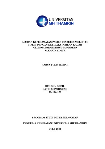 Ratih, Separindah (2024) Asuhan Keperawatan Pasien Diabetes Mellitus Tipe II Dengan Ketidakstabilan Kadar Glukosa Darah Di RSUD Pasar Rebo Jakarta Timur. Diploma thesis, Universitas Mohammad Husni Thamrin.