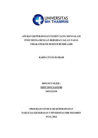 Pipit Dwi, Safitri (2024) Asuhan Keperawatan Pasien Yang Mengalami Pneumonia Dengan Bersihan Jalan Nafas Tidak Efektif Di RSUD Budhi Asih. Diploma thesis, Universitas Mohammad Husni Thamrin.