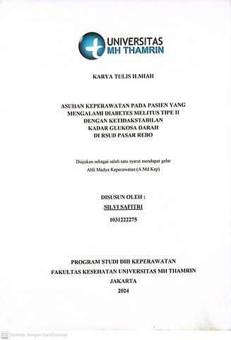 Silvi, Safitri (2024) ASUHAN KEPERAWATAN PADA PASIEN YANG MENGALAMI DIABETES MELITUS TIPE II DENGAN KETIDAKSTABILAN KADAR GLUKOSA DARAH DI RSUD PASAR REBO. Diploma thesis, Universitas Mohammad Husni Thamrin.