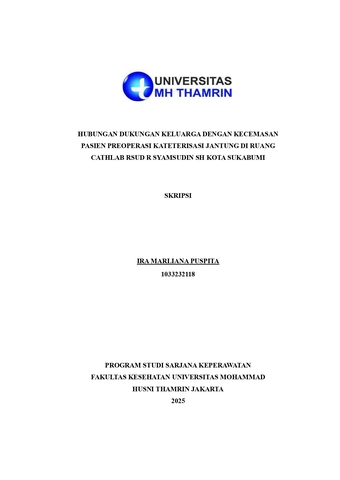 Ira Marliana, Puspita (2025) Hubungan Dukungan Keluarga dengan Kecemasan Pasien Preoperasi Kateterisasi Jantung di Ruang Cathlab RSUD R Syamsudin SH Kota Sukabumi. Other thesis, Universitas Mohammad Husni Thamrin.