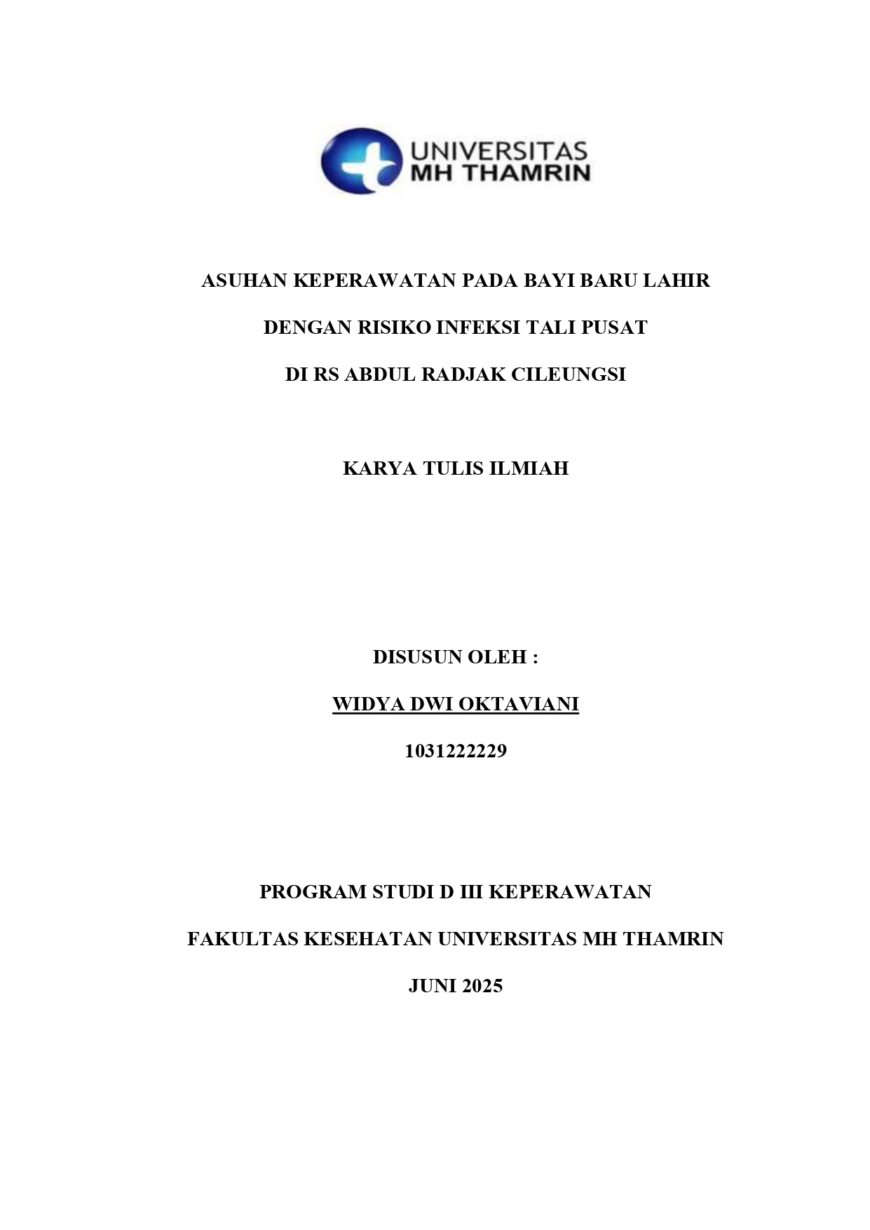 Widya, Dwi Oktaviani (2025) Asuhan Keperawatan pada Bayi Baru Lahir dengan Risiko Infeksi Tali Pusat di RS Abdul Radjak Cileungsi. Diploma thesis, Universitas Mohammad Husni Thamrin.