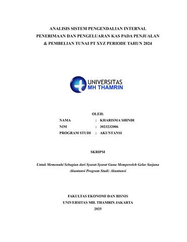 Kharisma, Shindi (2025) Analisis Sistem Pengendalian Internal Penerimaan dan Pengeluaran Kas pada Penjualan & Pembelian Tunai PT XYZ Periode Tahun 2024. Other thesis, Universitas Mohammad Husni Thamrin.