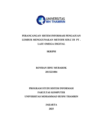 Royhan, Ibnu Mubarok (2025) Perancangan Sistem Informasi Pengajuan Lembur Menggunakan Metode SDLC di Perusahaan PT. Laju Omega Digital. Other thesis, Universitas Mohammad Husni Thamrin.