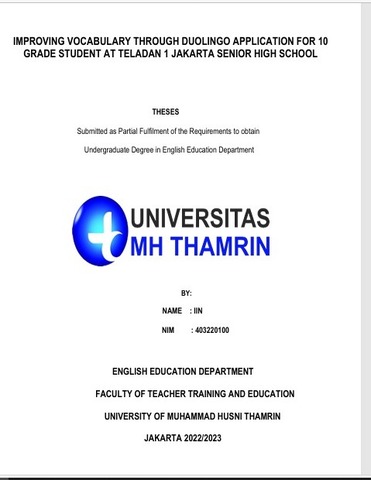 Iin, Iin (2022) Mproving Vocabulary Through Duolingo Application For 10 Grade Student At Teladan 1 Jakarta Senior High School. Other thesis, Universitas Mohamad Husni Thamrin.