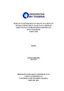 Sansan, Arisandi (2025) Hubungan Keterlibatan Orang Tua dengan Tingkat Pemulihan Anak Pasca Operasi di Ruang PACU OUBK RSUD R. Syamsudin, S.H Kota Sukabumi Tahun 2025. Other thesis, Universitas Mohammad Husni Thamrin.