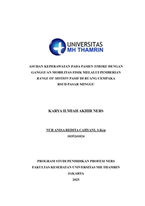 Nur Anisa, Redita Cahyani (2025) Asuhan Keperawatan pada Pasien Stroke dengan Gangguan Mobilitas Fisik Melalui Pemberian Range of Motion Pasif di Ruang Cempaka RSUD Pasar Minggu. Other thesis, Universitas Mohammad Husni Thamrin.