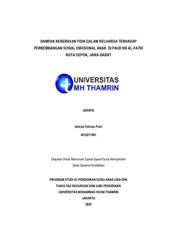 Adinda, Febrian Putri (2025) Dampak Kekerasan Fisik Dalam terhadap Perkembangan Sosial Emosional Anak di PAUD KB Al-Fatih Kota Depok, Jawa Barat. Other thesis, Universitas Mohammad Husni Thamrin.