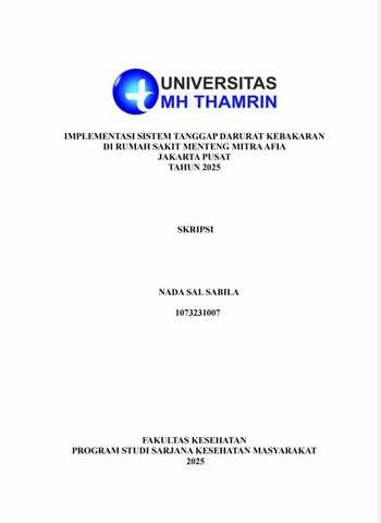 Nada, Sal Sabila (2025) Implementasi Sistem Tanggap Darurat Kebakaran di Rumah Sakit Menteng Mitra Afia Jakarta Pusat Tahun 2025. Other thesis, Universitas Mohammad Husni Thamrin.
