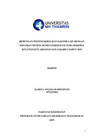 Karina, Anggia Rahmawati (2025) Hubungan Postur Kerja dan Faktor Lain dengan Keluhan Sistem Muskuloskeletal pada Pekerja Kuli Panggul Karamat Jati Jakarta Tahun 2025. Other thesis, Universitas Mohammad Husni Thamrin.