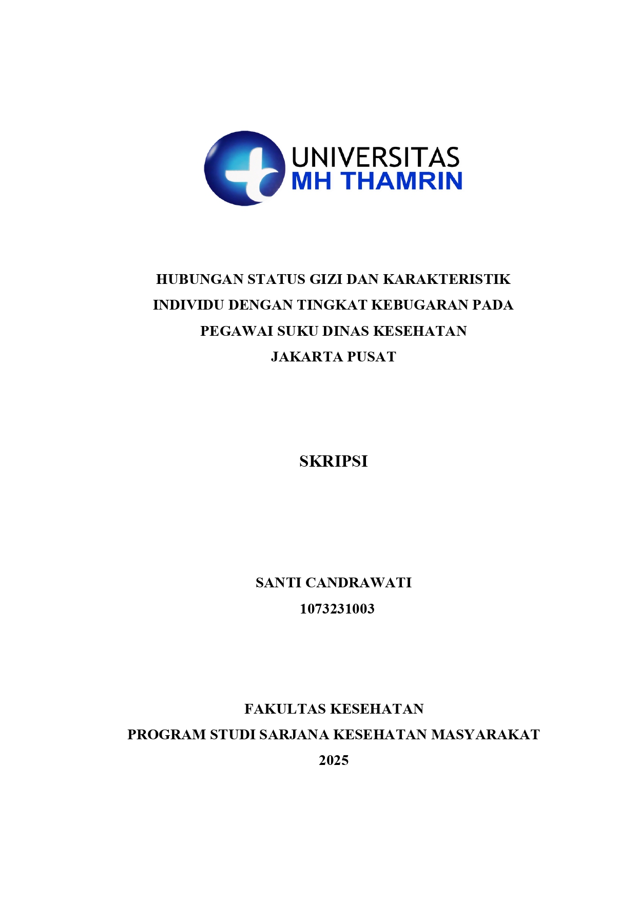 Santi, Candrawati (2025) Hubungan Status Gizi dan Karakteristik Individu dengan Tingkat Kebugaran pada Pegawai Suku Dinas Kesehatan Jakarta Pusat. Other thesis, Universitas Mohammad Husni Thamrin.