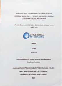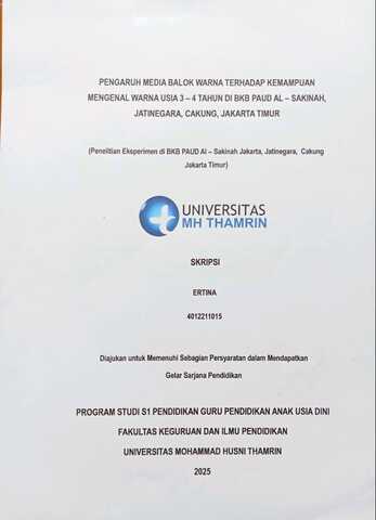 Ertina, Ertina (2025) Pengaruh Media Balok Warna terhadap Kemampuan Mengenal Warna Usia 3 - 4 Tahun di BKB PAUD Al - Sakinah, Jatinegara, Cakung, Jakarta Timur. Other thesis, Universitas Mohammad Husni Thamrin.