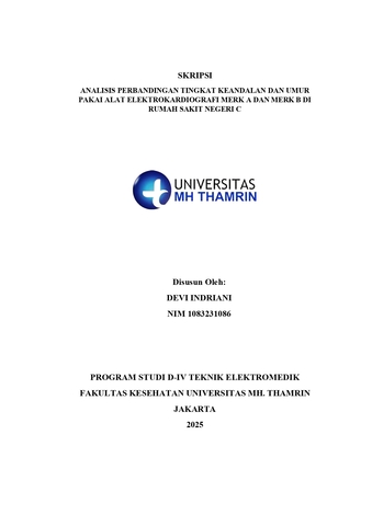 Devi, Indriani (2025) Analisis Perbandingan Tingkat Keandalan Dan Umur Pakai Alat Elektrokardiografi Merk A Dan Merk B Di Rumah Sakit Negeri C. Other thesis, Universitas Mohammad Husni Thamrin.