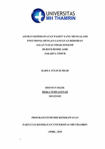 Riska, Nuryasyfah (2025) Asuhan Keperawatan pada Pasien yang Mengalami Pneumonia dengan Bersihan Jalan Napas Tidak Efektif di RSUD Budhi Asih Jakarta Timur. Diploma thesis, Universitas Mohammad Husni Thamrin.