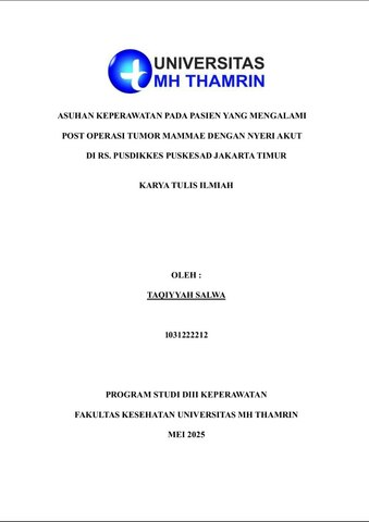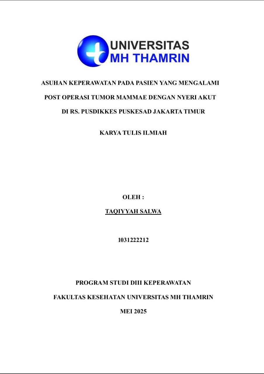 Taqiyyah, Salwa (2025) Asuhan Keperawatan pada Pasien yang Mengalami Post Operasi Tumor Mammae dengan Nyeri Akut di RS. PUSDIKKES PUSKESAD Jakarta Timur. Diploma thesis, Universitas Mohammad Husni Thamrin.